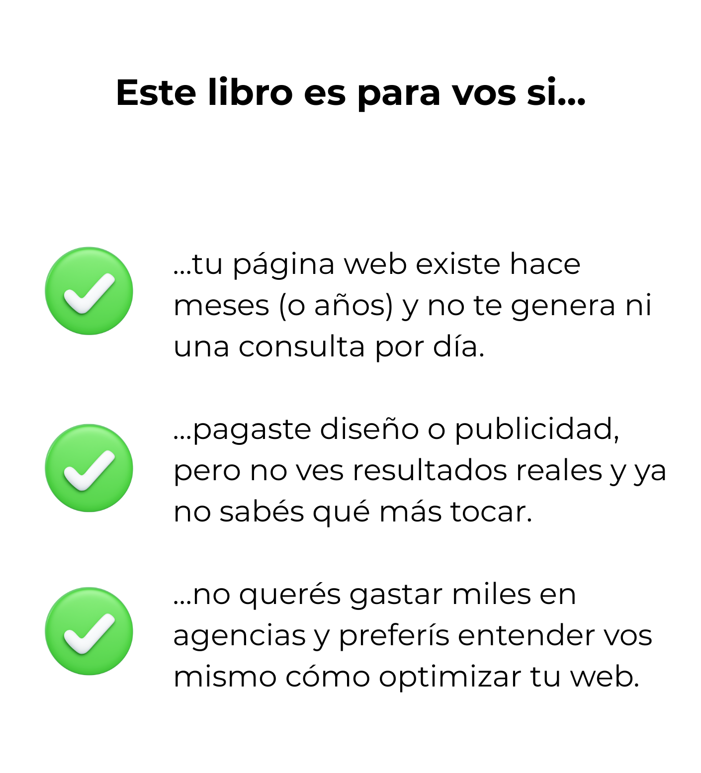 El libro te enseña exactamente qué mejorar, qué cambiar y cómo aplicar los 10 bloques para convertir tu web en una máquina de consultas.